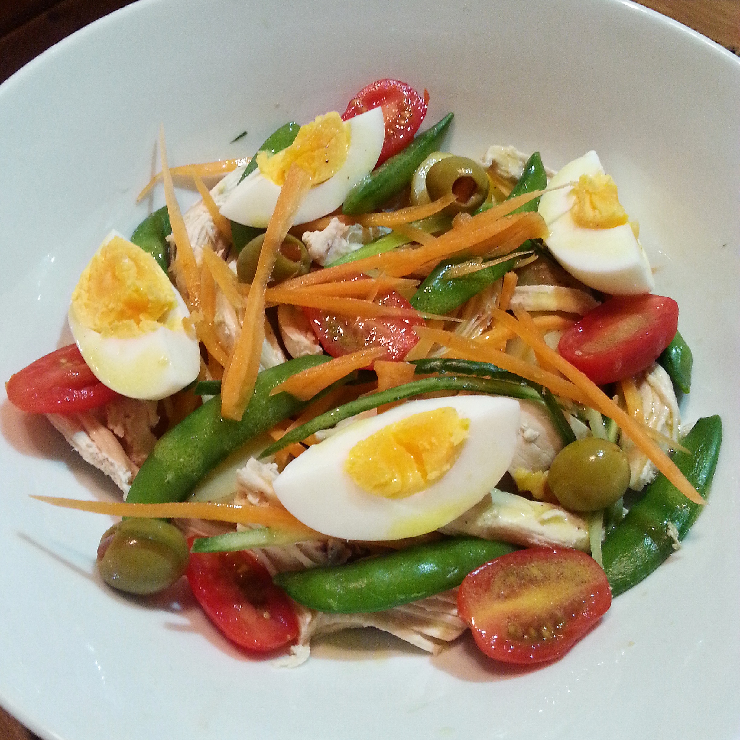 So Salmagundi is apparently traditionally an English salad made with a mixture of whatever you like from cooked meats to seafood to veg to nuts. It’s a typical English bung-it-all-in job! It goes without saying then that this is a good weeknight dinner that you can make quickly with leftovers of whatever you can find. We followed a recipe for this version (and used the julienne peeler!) but there isn’t a set recipe by any means.