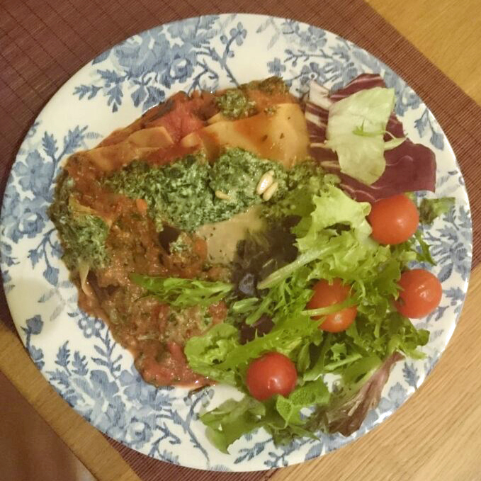 I had dinner with my friends Anisha and Ghaya at their house tonight. They were aware of the 365 dinner challenge and kindly cooked me a lovely four vegetable lasagna. In-between the lasagna sheets was a delicious mix of aubergine, peppers, spinach, passata and ricotta. Luckily there was enough for seconds 🙂