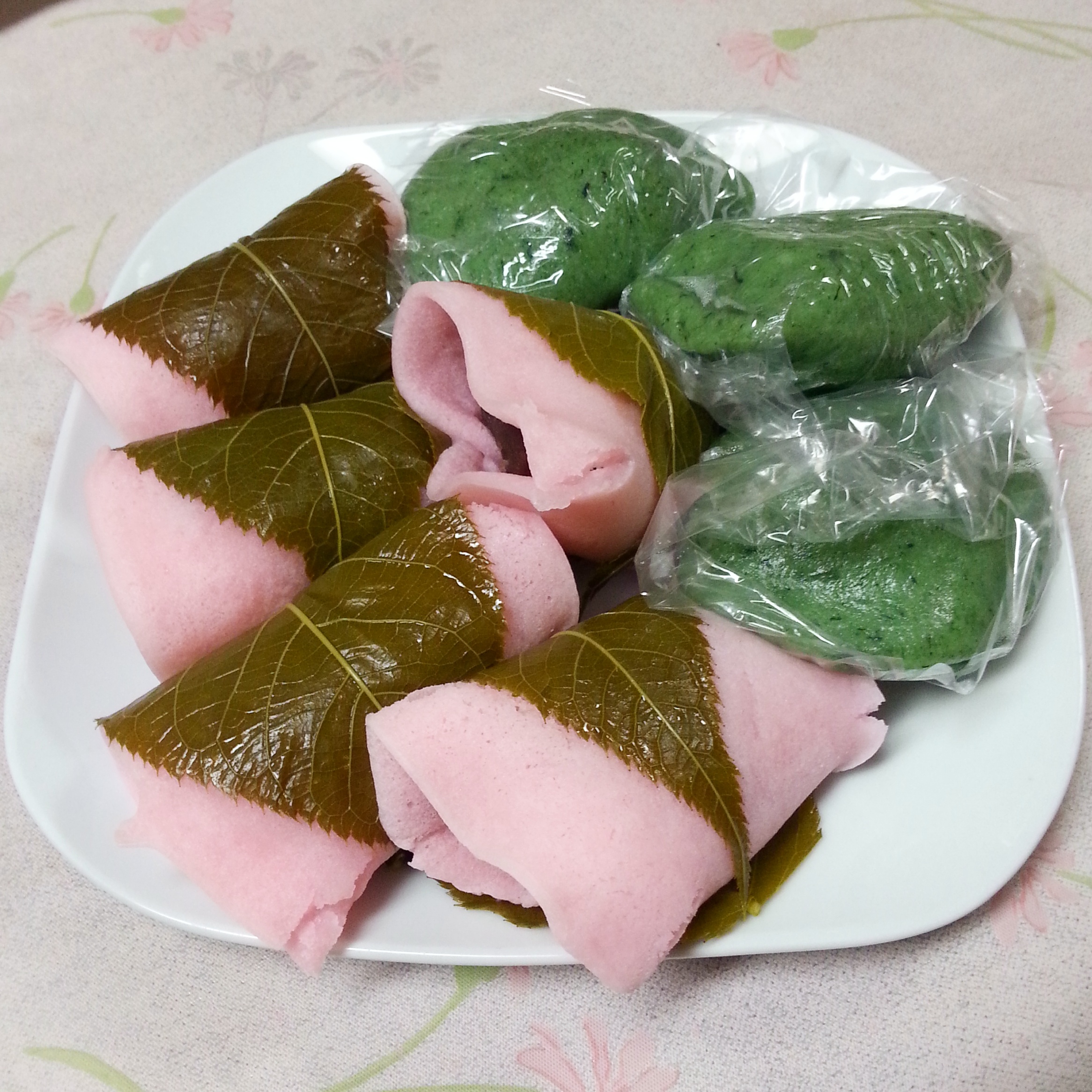 For dessert we had yomogi daifuku and sakura mochi which are Japanese sweets that are popular in springtime. Yomogi daifuku are made by wrapping Japanese mugwort flavoured mochi (sticky rice cake) around a ball of red bean paste. The mugwort mochi or “Kusa mochi” smells lovely and really makes you think of springtime. Sakura mochi are made by wrapping a thin layer of pink fluffy rice cake around red bean paste and then wrapping the whole thing in a pickled cherry leaf. You can eat the leaf but it’s totally up to you and I took mine off along with Momi and her mum. You still get a little bit of the flavour on the rice cake but it’s less overpowering in my opinion.