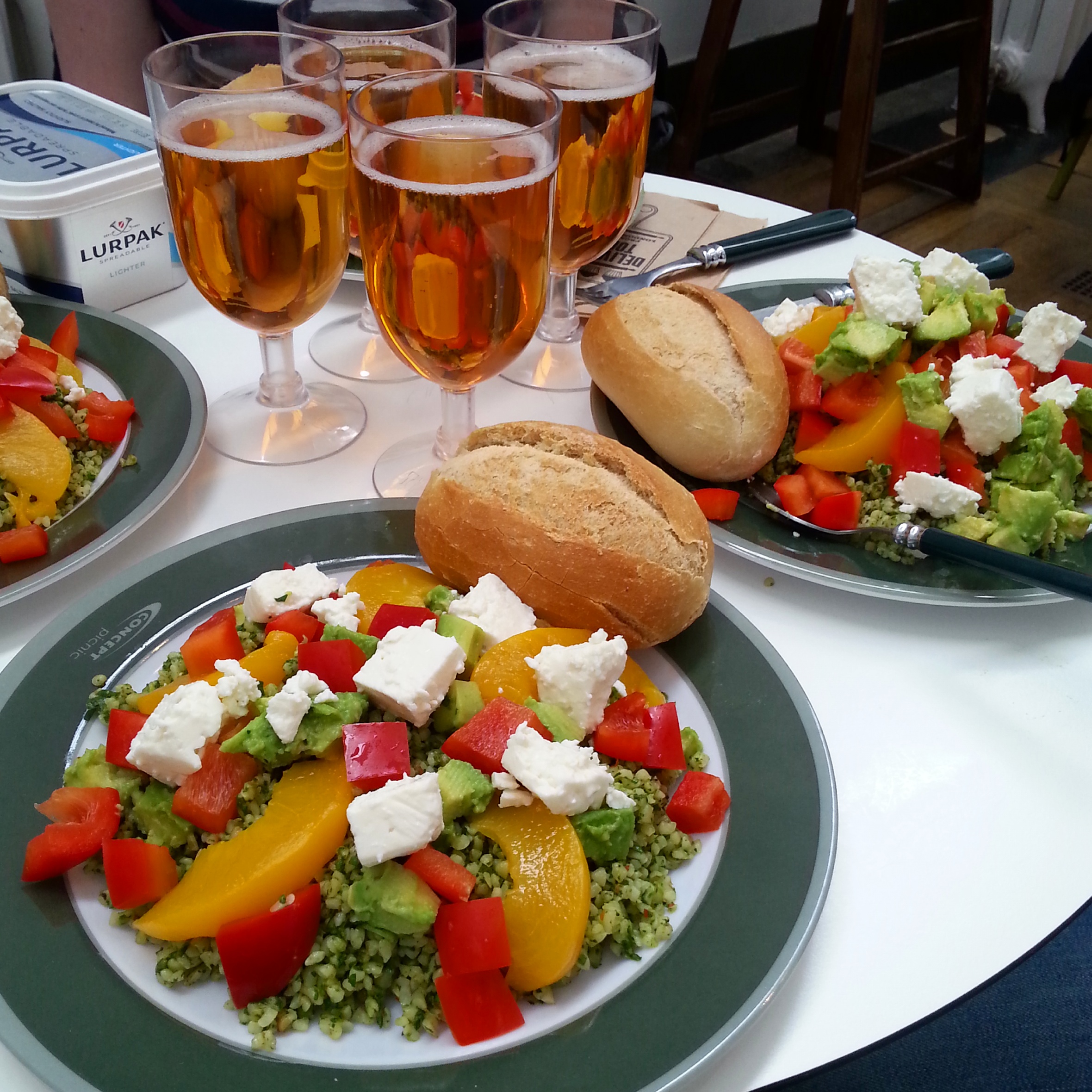 Steph and Matt cooked again today and prepared a lovely colourful salad for us. They have an awesome picnic set so we took everything to the indoor picnic area (what a great idea!) at the Science Museum and got all our plates and glasses out and had a very civilised picnic! It was great! The salad lived up to expectations too – I mean how can a salad that colourful possibly disappoint? Afterwards we took Owen to see some of the planes and decided we’ll definitely bring him back in a few years when he’s a bit older and can appreciate it a bit more.