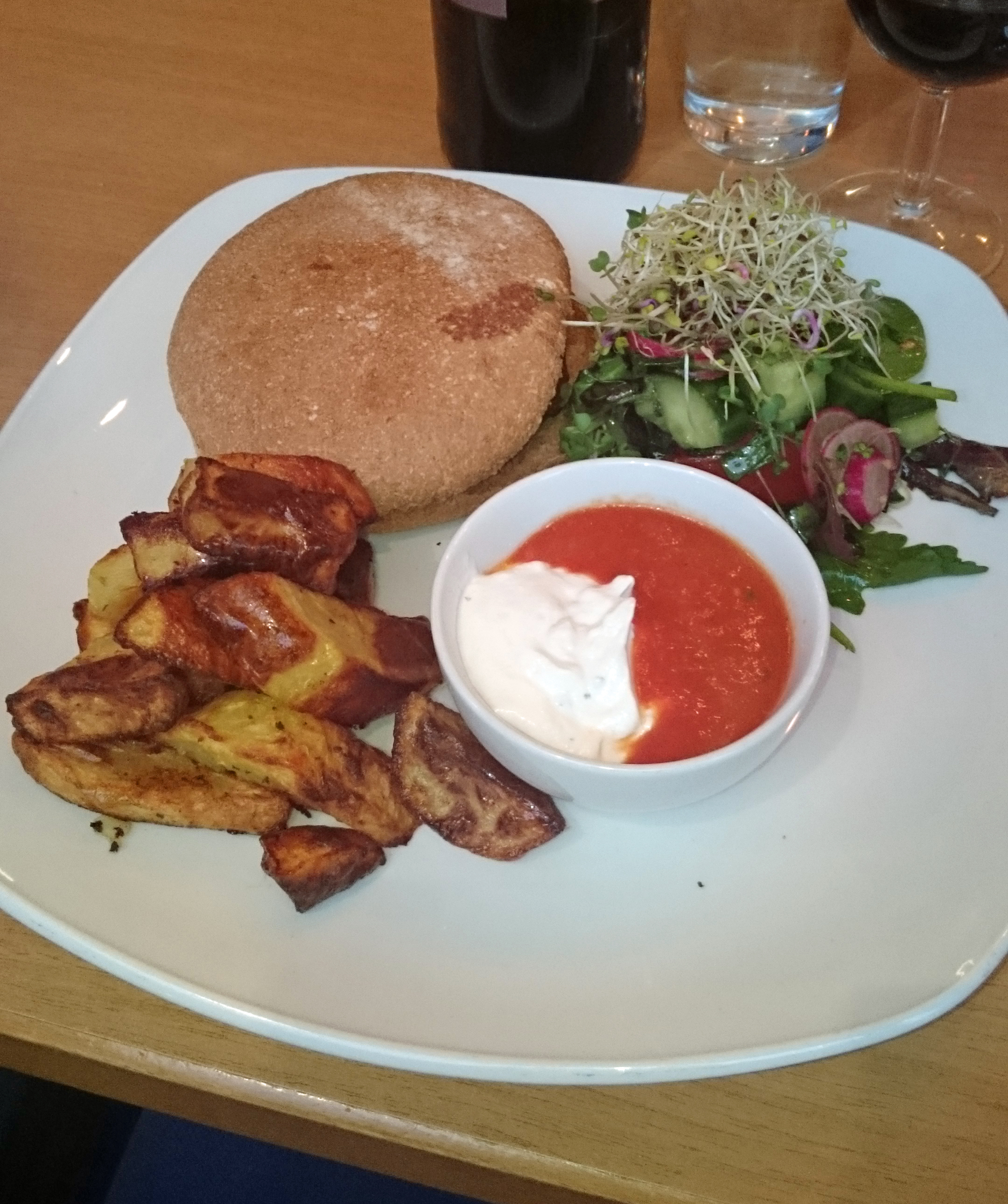 I opted for the vegan burger as my main course. I was a bit disappointed by the bun it came in as it was quite dry and let the dish down but the tofu and veggie mince patty was tasty and so was the relish.
