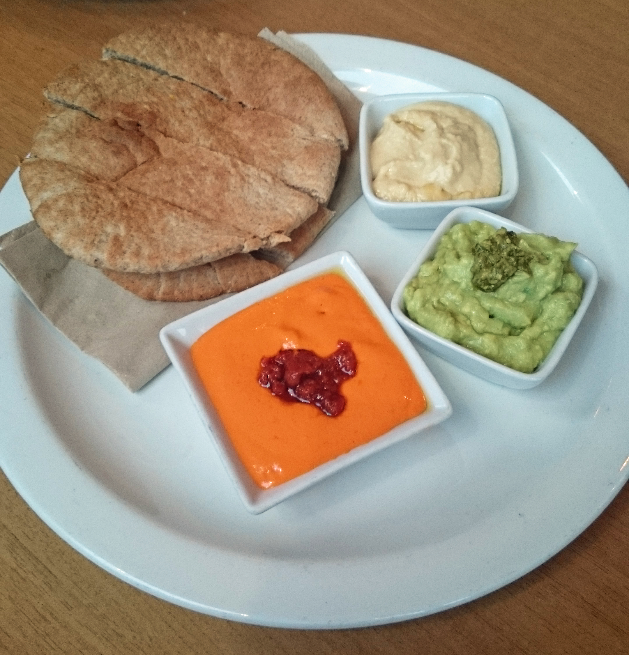 For Mark’s sister’s Christmas gift, we said we would take her to this vegan restaurant that Mark had found in West Brompton. Finally we managed to set a date to go! Everything on the menu is vegan, but you can also get gluten free and raw options. We started with a trio of dips with pitta breads and they were SO good. I especially loved the tomato/pepper (I think) dip! I have to mention the vegan seitan stroganoff that Claire ordered here because it was heavenly! It’s made with cashew cream and I will definitely be coming back here to have that at some point!