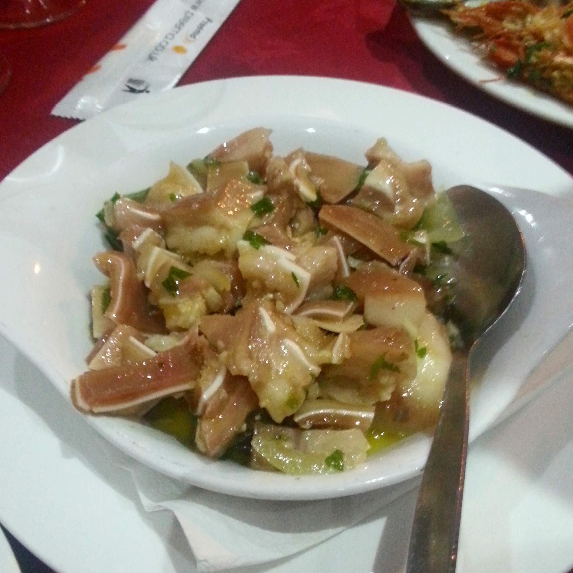 I was still not feeling 100% but my tastebuds weren’t letting me down any more so Mark and I joined the Feast of Nations crowd, this time for Portuguese at A Toca. Top dishes for me were the Bacalhau com natas (cod with cream) and the Posta a mirandesa (mirandesa steak). The steak skewer was a showstopper too arriving on a huge hanging skewer. The pig’s ear didn’t go down as well as it was sort of soft and gristly. Gross. Overall though the food was fantastic and the wine was too.