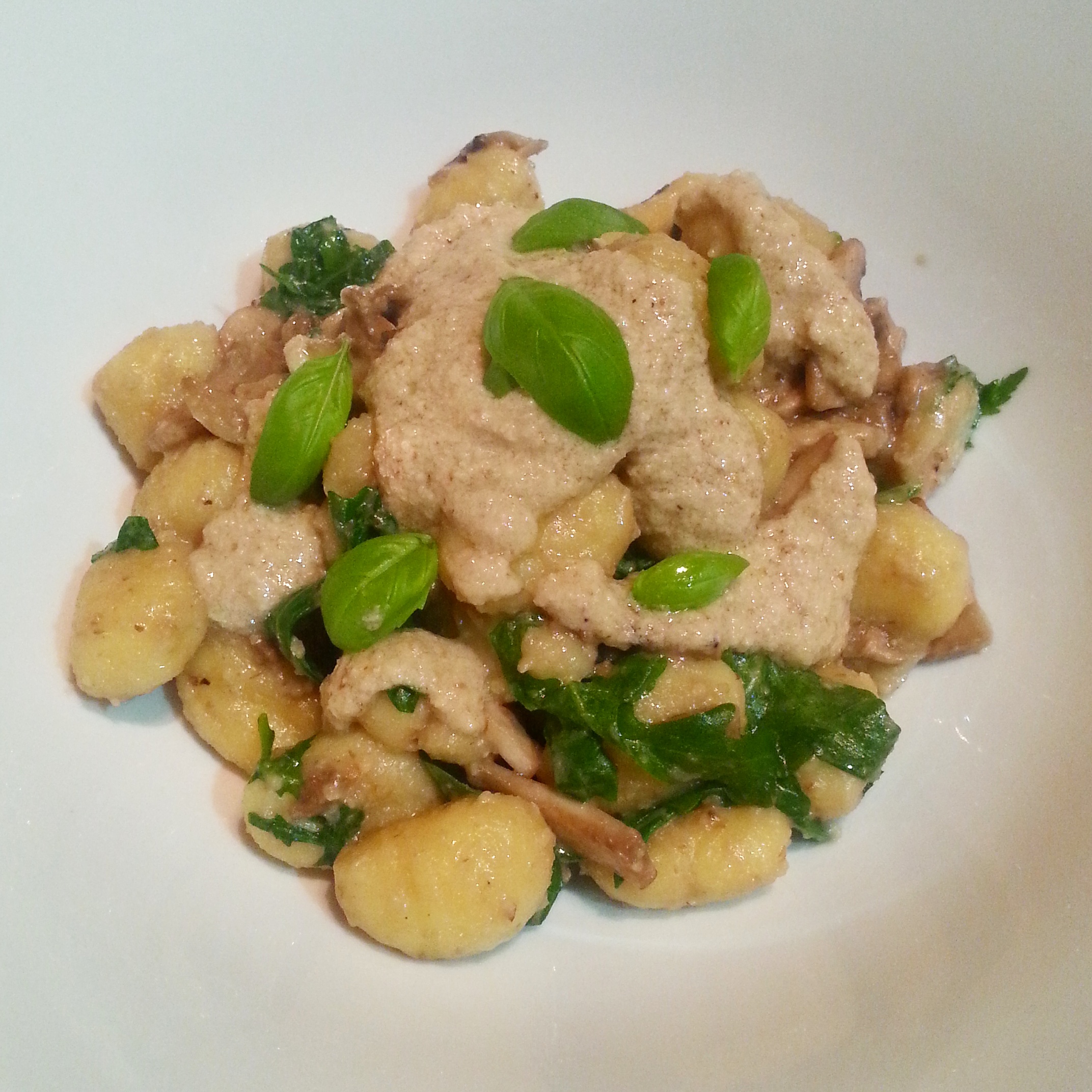 12/10/2015: Mushroom gnocchi with arugula and walnut pesto
