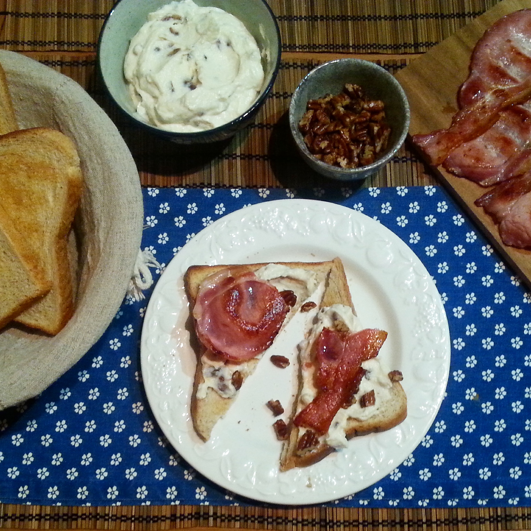 I had already bought ingredients before realising this is actually meant to be a breakfast toast – who cares right? Everyone loves a good breakfast for dinner! I was a bit unsure about the sweet maple-date ricotta mixture but as soon as I gave it a sneaky taste while mixing it together I was totally reassured. It was delicious spread on some toast and topped with the nuttiness of the sugar-toasted pecans and the saltiness of the bacon. No leftovers for lunch tomorrow and a clean plate award for me!