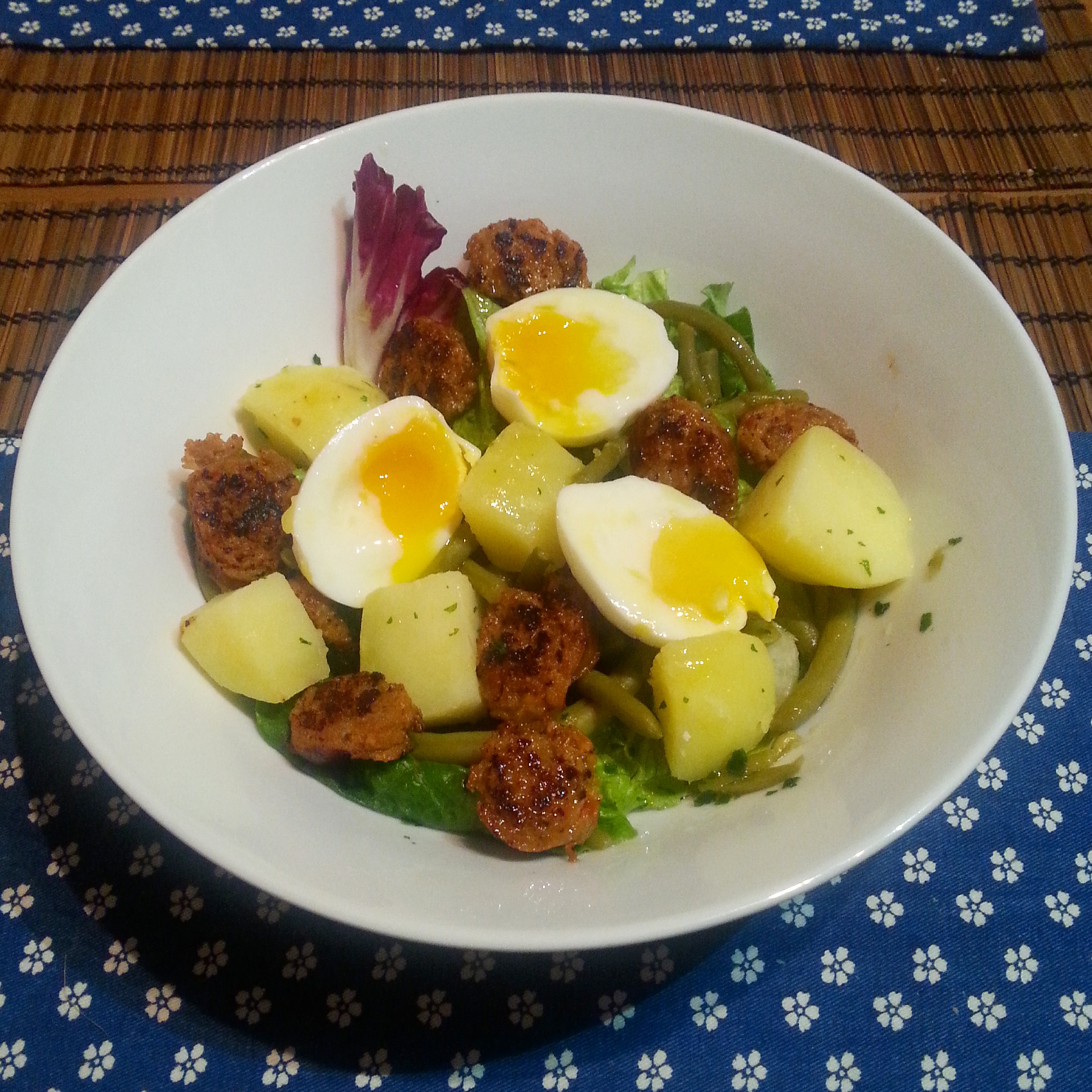 http://www.bbcgoodfood.com/recipes/1508648/chorizo-and-softboiled-egg-salad