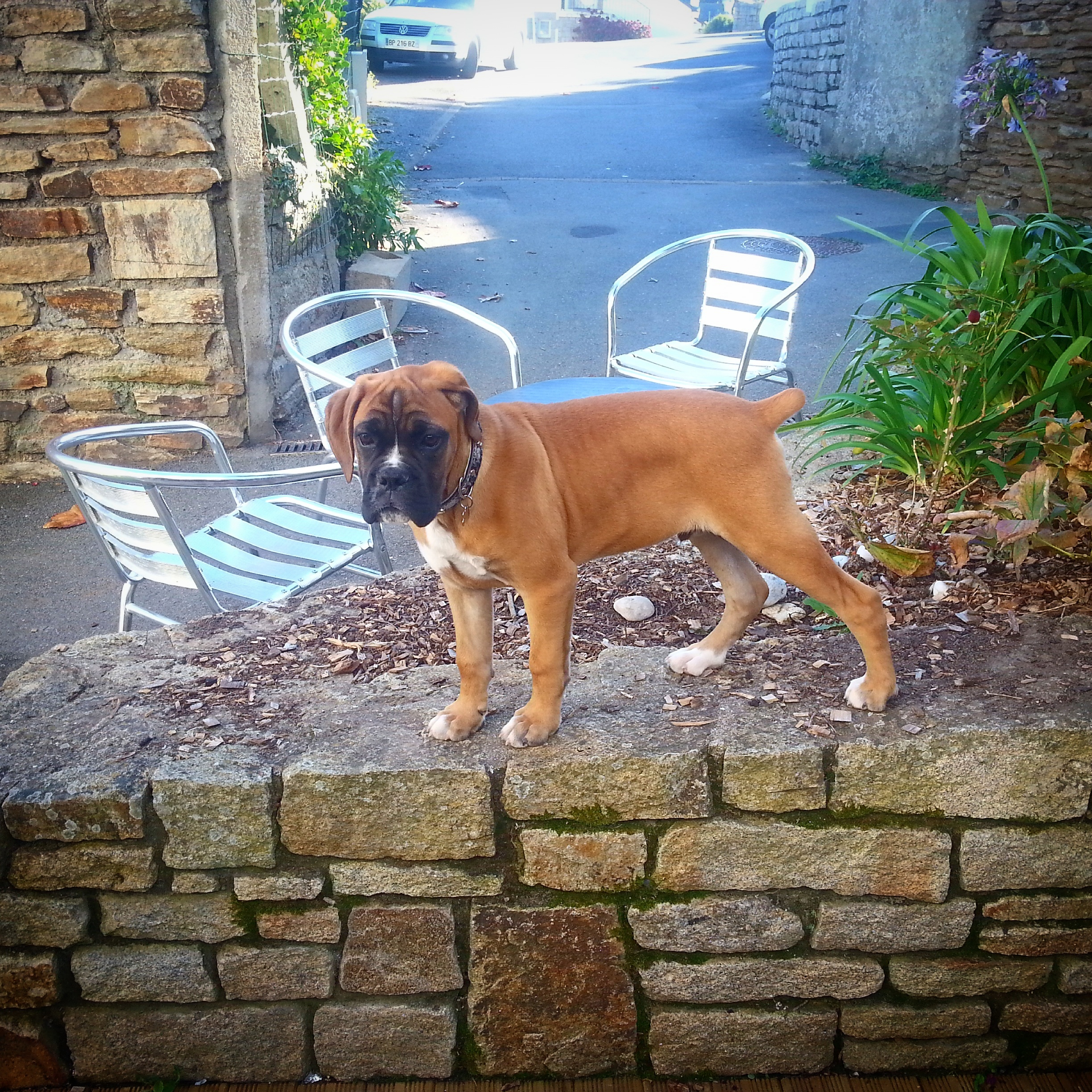 We stopped for lunch on the opposite side of the river at Le Fond de Gale and I ordered a burger with a home-baked black bun which looked and tasted awesome. We also met the cutest little boxer puppy called Gaston who lives at the bistro.