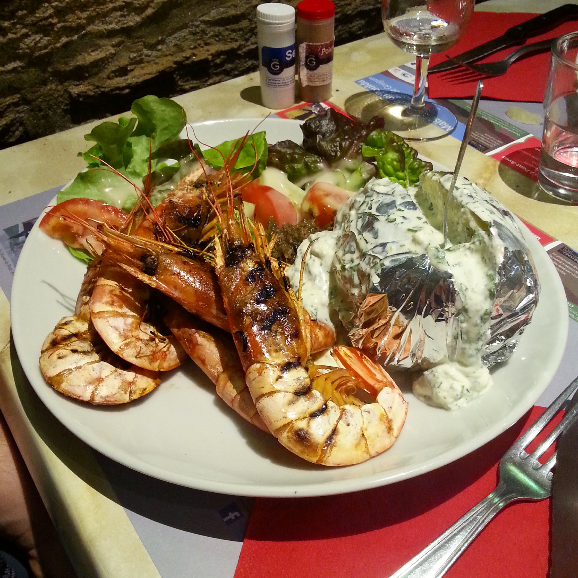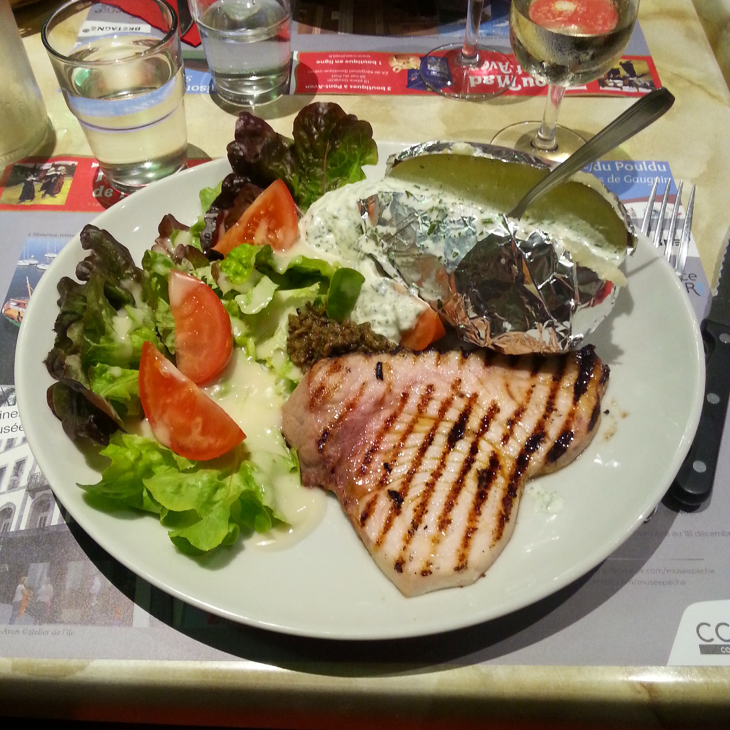 The whole group went out for dinner again this evening, this time to Le Rive Gauche in Doëlan. Mark and I ordered the swordfish which was really yummy and had a great char on it where it had been grilled (but not too much of course!!). Some of the other dishes looked so good that I just had to take pictures of them too!
