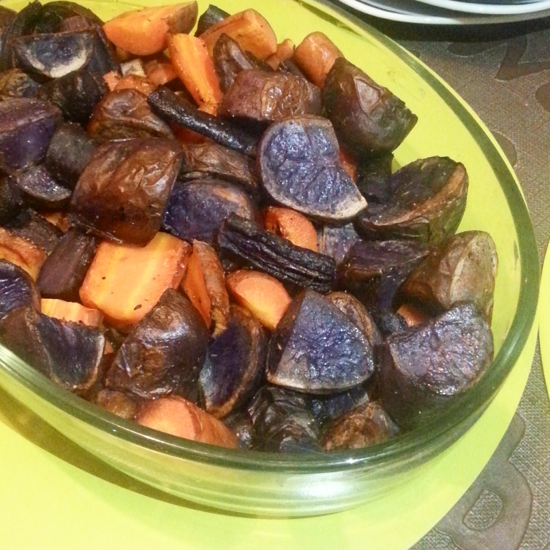 Tonight Louise and Katy made us some savoury tarts; one with vegetables, one with tomato and egg, and one with bacon and mushrooms. We found a great shop in the nearby town of Clohars-Carnoët that sold loads of great fresh fruit and veg that I got far too excited about. Tonight we had some roasted black and orange carrots, and some purple potatoes to accompany our tarts which were delicious, but some people around the table found the colours a little disconcerting – I thought it was great!