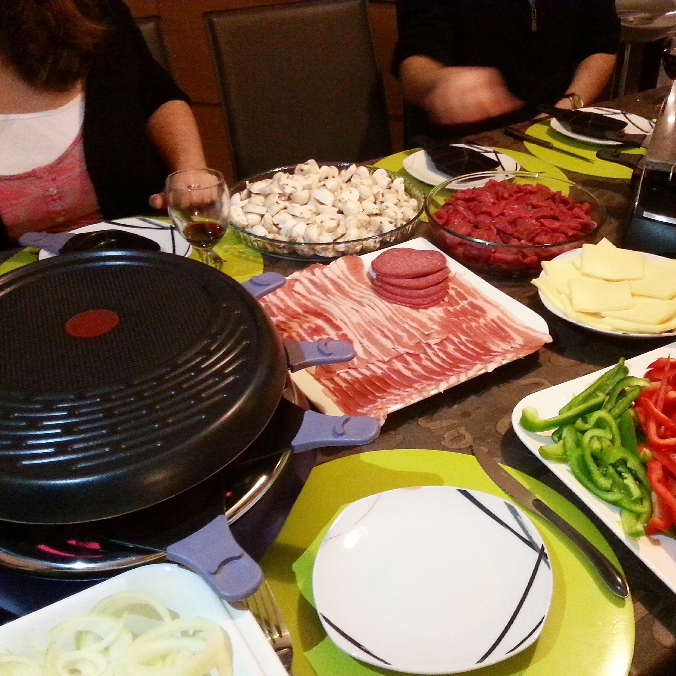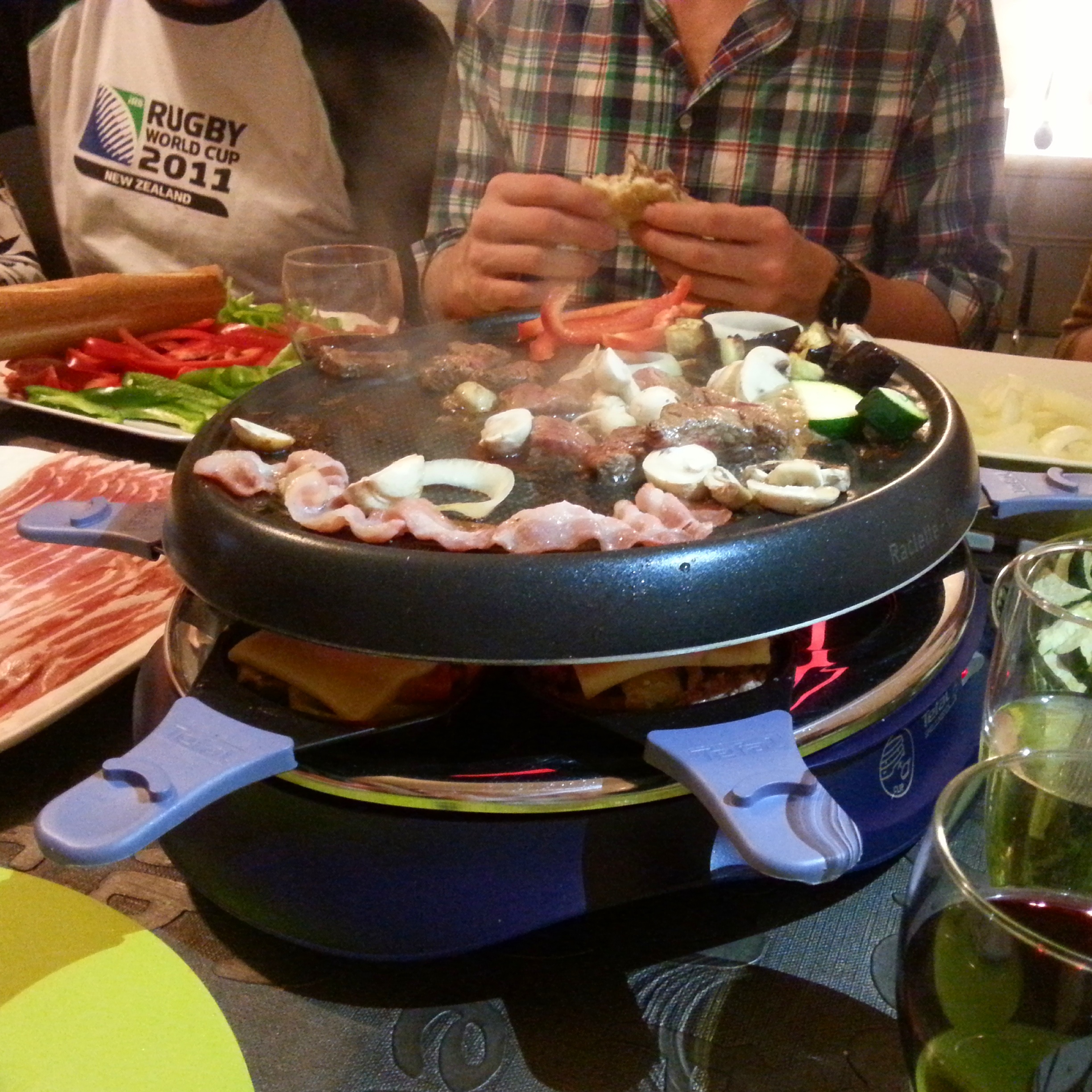 The house we were staying in had 2 raclette machines so Mark and I arranged a raclette party for tonight! We went all out and bought steak, bacon, potatoes, mushrooms, courgettes, aubergines, peppers, onions. It was so much fun cooking the bits and bobs on the hot plate on the top and then melting the cheese over them using your own little tray underneath! I ate way too much though!