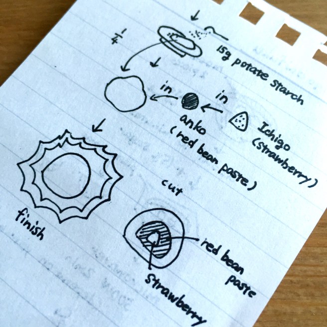 My friend’s sister taught me how to make daifuku and wrote the recipe for me to bring home.