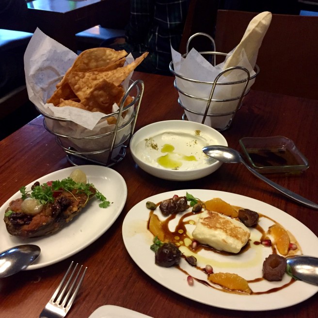 A highlight for me was the labneh, a strained, sour yoghurt with za’atar, a middle eastern spice/seasoning, best ordered with house-made lavash chips seasoned with sumac and salt. Another was the seared halloumi with dates, pomegranate and orange. The combination of that thick, soft halloumi with the sweet dates and pomegranate seeds, the fresh citrus of the orange and then the sharp intensity of the pomegranate molasses just blew me away.
