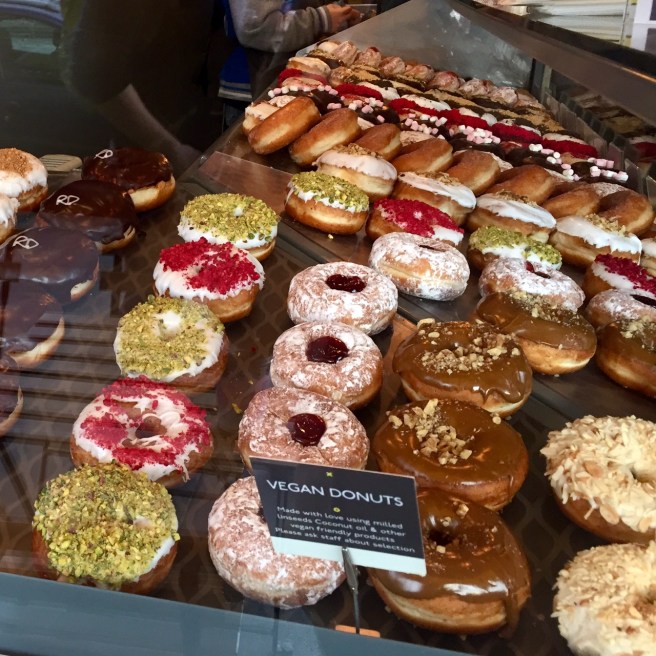 The range of doughnuts was huge with flavours like Nutella & Marshmallow, Maple Bacon, and Baileys Bliss and they were so so good! The most impressive part for me though was the range of vegan donuts. Yep, not just one token vegan option, but a choice and they were delicious – you could. not. tell. that they were vegan!