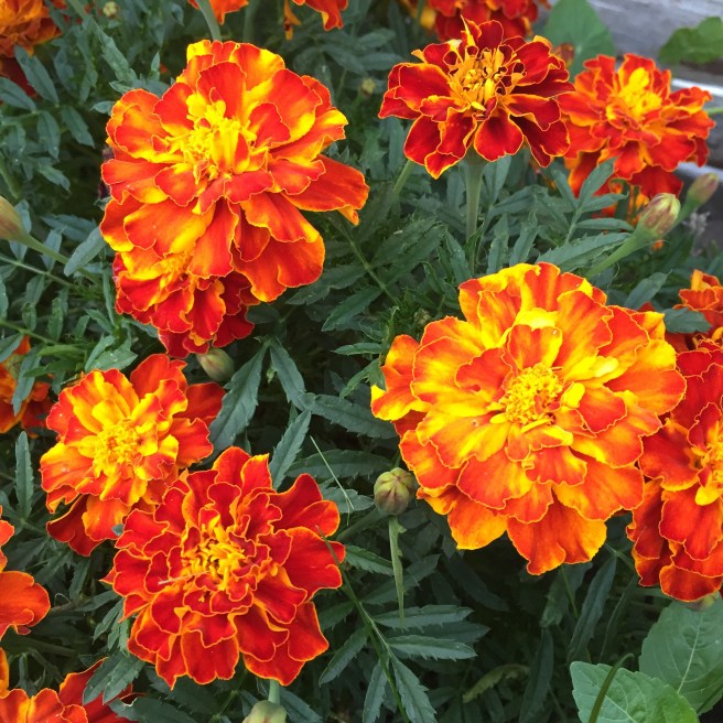 The marigolds also did really well. Again, they germinated fairly quickly and before long they were nicely formed little plants with one or two beautiful orange flowers. After a bit more English weather (plenty of rain!) they had really spread and I have counted upwards of ten flowers to a plant.
