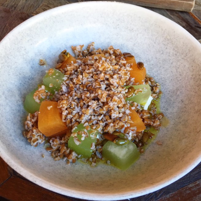 The combination of labneh, smoky freekeh, melon and chilli had me instantly intrigued, but admittedly somewhat suspicious of what I was letting myself in for. The result was absolutely delicious and I have recreated a version of this at home on numerous occasions since.