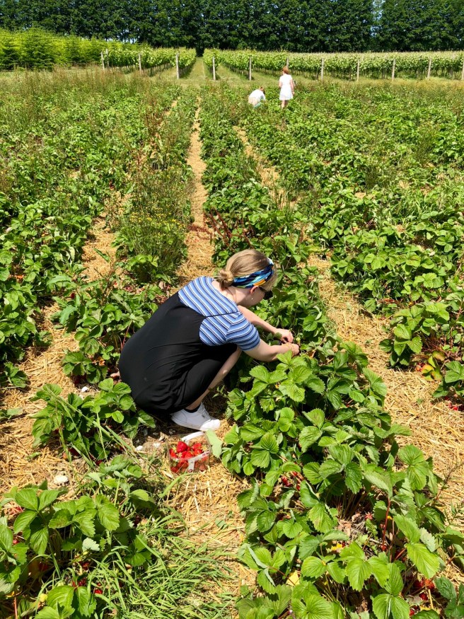 Summer = strawberries, especially with Wimbledon coming up, and there’s nothing quite like locally grown British strawberries. I don’t remember ever going strawberry picking before, so after hearing that a couple of friends had been, and seeing photos on Instagram, I figured why not! It’s a great way to get outdoors, engage in a local tradition, and it’s really good fun with kids too.