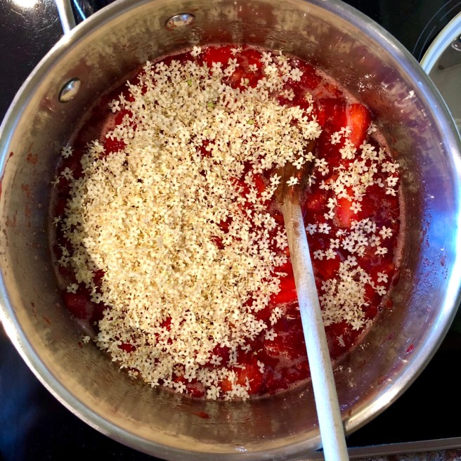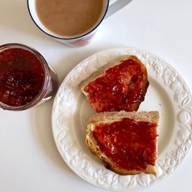 I don’t know why, but I’ve always been a bit scared of making jam. Picking strawberries was the motivation I needed to finally have a go. With the help of a great strawberry and elderflower jam recipe from fabfood4all – a true authority on jam-making (and possibly the loveliest person on Instagram!) – I was able to make my first ever batch of jam. And it was a success! The sweet strawberries are the hero, but with the occasional clear elderflower flavour. It looks so pretty too with the little elderflowers interspersed throughout the jam.