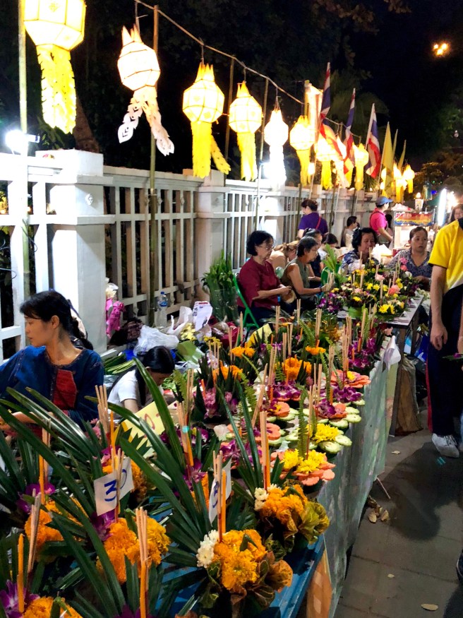 We took our krathong and walked along to the river to release it on to the water. There were lots of stalls selling them as well and it was a lovely sight watching the little lights bobbing along in a little flotilla.