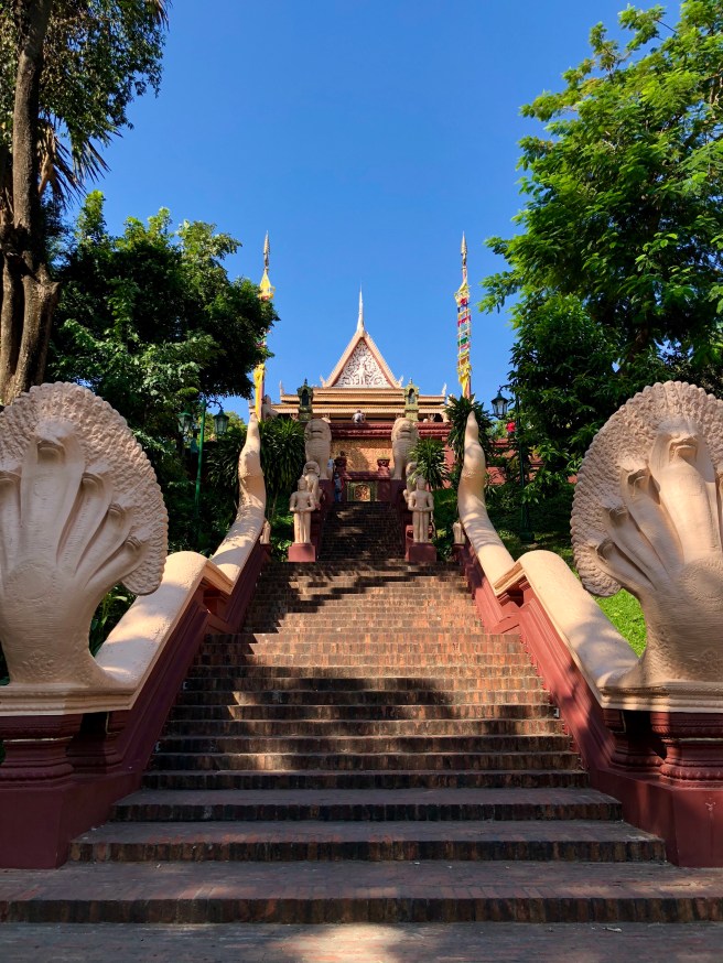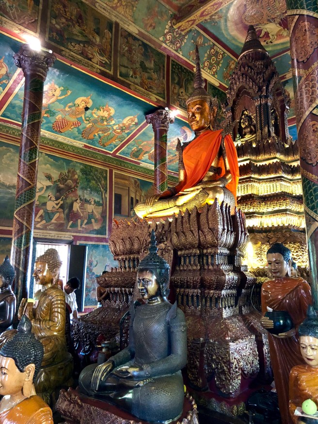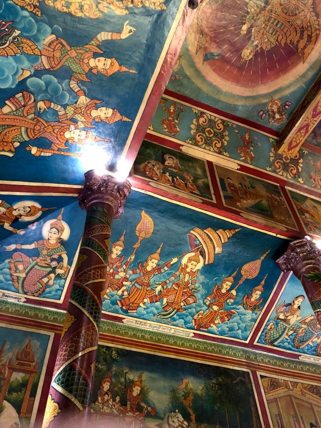 Located in the middle of a busy roundabout just north of the Royal Palace, the grounds of Wat Phnom are actually more peaceful than you would expect. The temple itself sits atop a tall mound in amongst the trees. I loved the main prayer room which has really beautiful paintings lining the walls and ceiling.