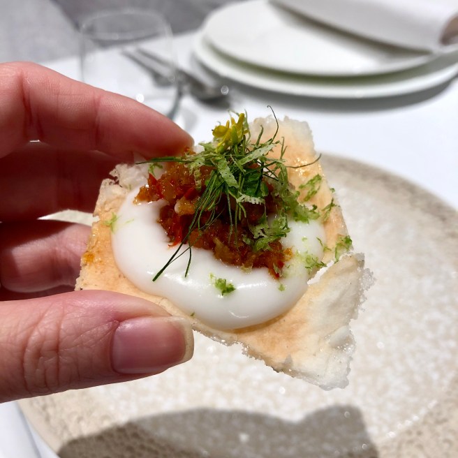 Yet another from Bruges! We enjoyed a really special Easter menu at Hotel Dukes Palace, the highlight of which, for me, was the starter of bream with mango, wasabi meringue, soy marshmallow topped with sesame, yuzu, and yoghurt.