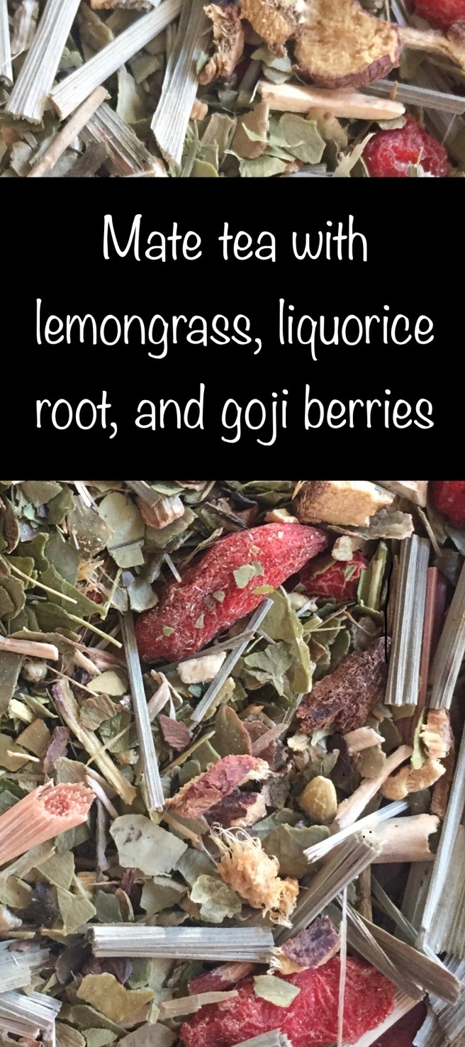 This tea is perfect for January and the cold winter months, because not only does it have some fab, energising ingredients, but it tastes luscious! The base of this tea is mate (pronounced ma-teh) which you can get online from many tea & health food sites, and Amazon sell it too. It has a greater antioxidant capacity and caffeine content than green tea, giving you an energy boost to set you up for the day. Lemongrass gives this tea some zip to wake you up with a yummy lemony note, liquorice root infuses it with a sweet, warming anise hum that deepens and smoothens the flavour, and goji berries finish it off with a fruity hit. It’s not going to make the weather warmer, or give you a guarantee that you’ll stick to your resolutions, but it can just bring a bit of guilt-free happiness and energy to a dull January day!