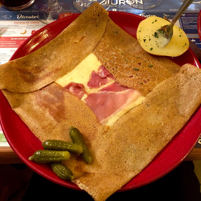 We had a lovely dinner at Le Chamois d’Or where they serve delicious crepes as well as tartiflette and a fantastic entrecôte topped with ham and cheese. It’s not for the dieters out there, but it’s perfect after a day of strenuous skiing…
