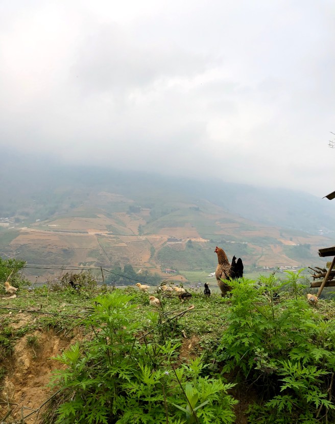 One of the options we could prebook through Sapa Sisters was to have lunch at a local home which sounded interesting and so I opted for it for our first day. I imagined watching or even helping the family to prepare food and eating all together, but it wasn’t like that which I guess was a bit of a shame and I felt a bit like we were intruding. The food was simple but absolutely delicious: egg cooked with greens that I think were spring onion, steamed morning glory, chicken with vegetables, crunchy green beans with garlic, rice, and a spicy, sour chilli sauce made with chilli, salt and lemon juice. It was wholesome but healthy – perfect to set us up for some more hiking.
