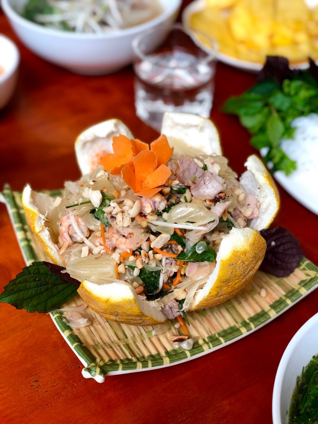 Thankfully we were provided with take-away boxes so we didn’t have to finish everything. We made sure we ate the things that wouldn’t keep like pho and bun cha, and packed up some of the spring rolls, banh xeo and pomelo salad to have for dinner.
