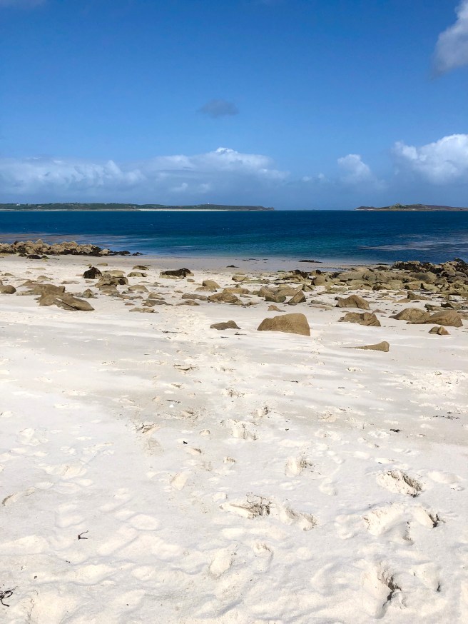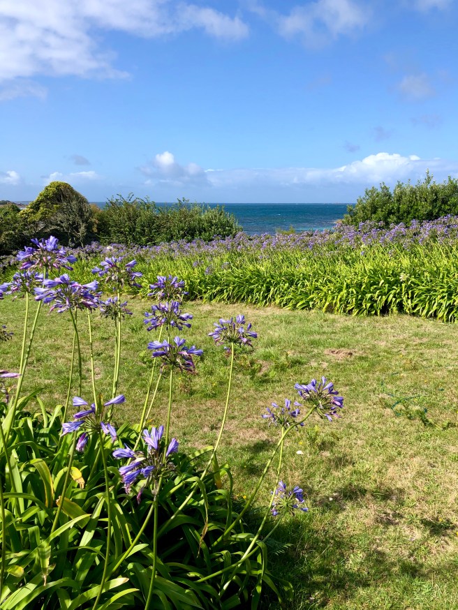 The beauty of the Isles of Scilly is by far best enjoyed with a walk along the coast. Whichever island you find yourself on, the contrast of rugged rocks interspersed with white, sandy beaches and stunning views over to the neighbouring islands will not disappoint and the ocean breeze is so energising. We started our walk at Porthmellon beach on St Mary’s and followed the coastal path towards Juliet’s Garden Restaurant. The views along this stretch back over Hugh Town were just gorgeous looking out over fields of agapanthus flowers.
