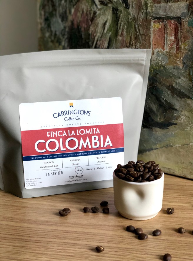 I have been keenly following their progress towards the launch of Carringtons Coffee Co. and was ready with my purse (yes that’s right – this is not a sponsored post) as soon as they announced the availability of their first limited batch of Finca La Lomita Colombian coffee. They offer their beans whole or ground to either a coarse, medium or fine consistency with a recommendation depending on how you want to prepare your coffee. I ordered the beans whole so that I could grind them at home, and they arrived within a couple of days. The beans are roasted mid-week and sent out first class towards the end of the week so they were as fresh as they could be.