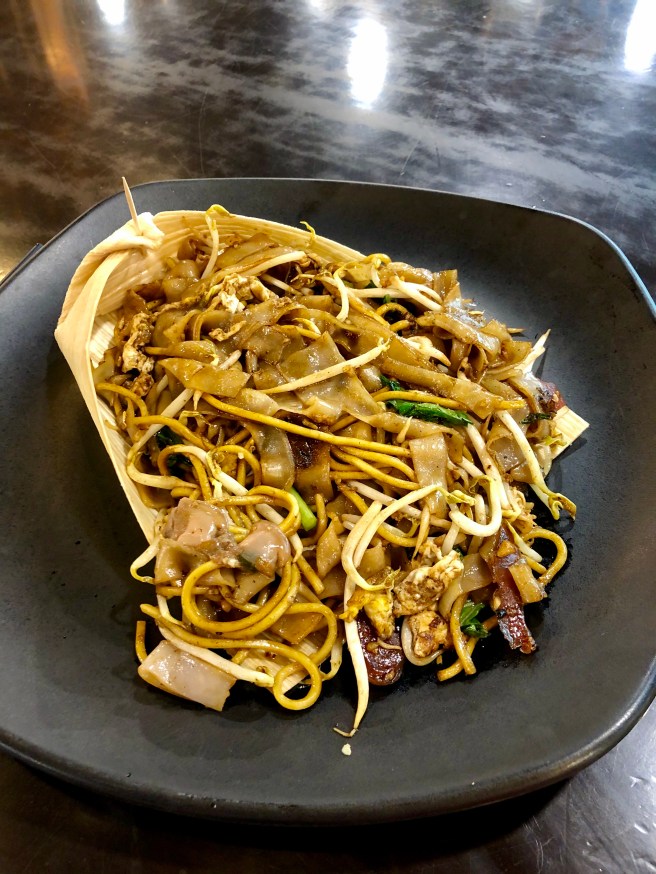 Char Kway Teow is made with thick, flat rice noodles stir fried with soy sauce, Chinese sausage, often seafood and bean sprouts. It’s not the healthiest of meals, but it’s certainly tasty. I tried it at the food court of The Shoppes at Marina bay sands where it is served on opeh leaf and the portions are incredibly generous!