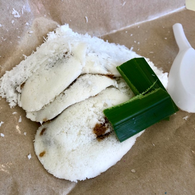 Putu Piring are steamed rice flour cakes filled with a sweet, treacle-like syrup made from palm sugar, and served with shredded coconut. They are typically made in individual stainless steel moulds/pans. I heard about putu piring from watching the Netflix show “Street Food” which featured the family-run hawker stall at Haig Road food market which isn’t far from the Peranakan Houses. The putu piring were beautifully fluffy and sweet so I’m glad I made the effort to find them as they were even better than I had expected!