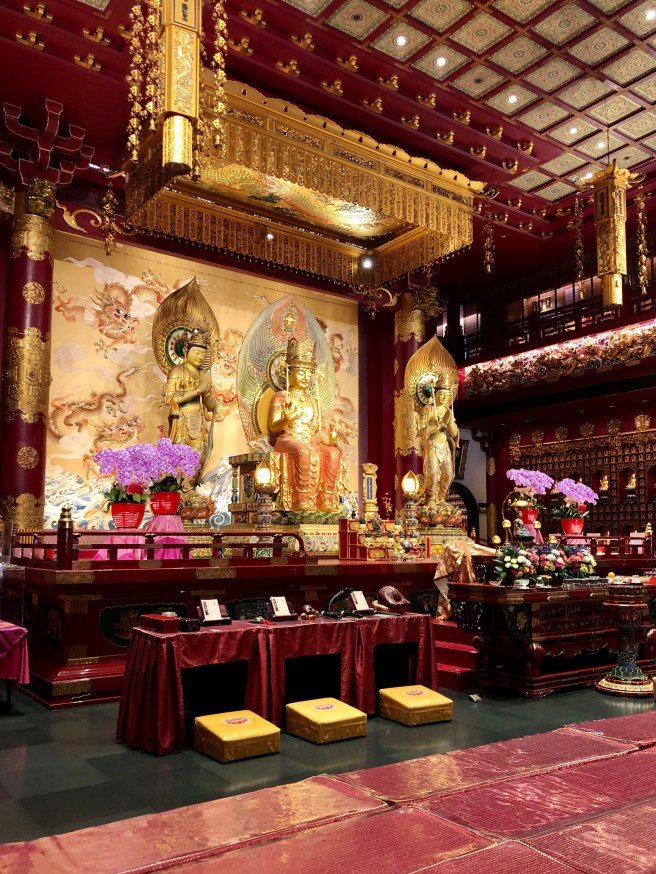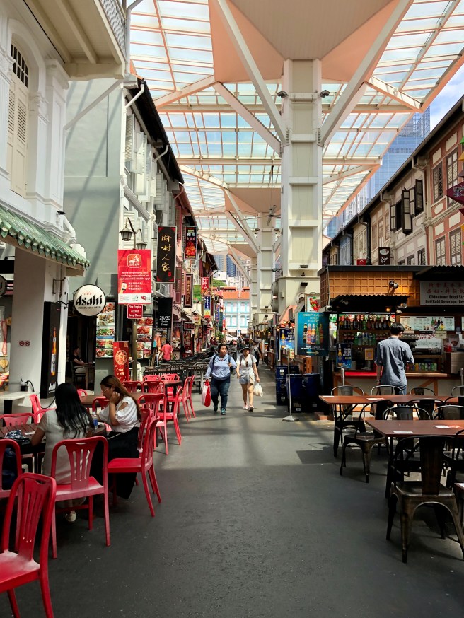 My accommodation, Bohemian Chic Hostel, was in Chinatown which seems to be where a lot of the budget and backpacker/hostel accommodation is. It’s a great part of town to stay in as there is plenty to see, a lot of the central sights are within walking distance, and there’s plenty of food and souvenir shops too. The Buddha Tooth Relic Temple is beautiful and covers four floors – I loved walking around the main hall and going up to the rooftop orchid garden. Sri Mariamman Hindu temple also looks impressive, but I didn’t actually go in as there was a ceremony going on and I didn’t want to intrude. Smith Street has a lot of souvenir stalls as did the indoor market, but I was distracted by all of the food! The hawker centre inside the indoor market houses the first hawker stall to receive a Michelin star for their Hainanese chicken rice which I’ve written more about in this post on Singapore Food & Drink. There are also loads of food options on Smith Street also known as Chinatown “Food Street”.