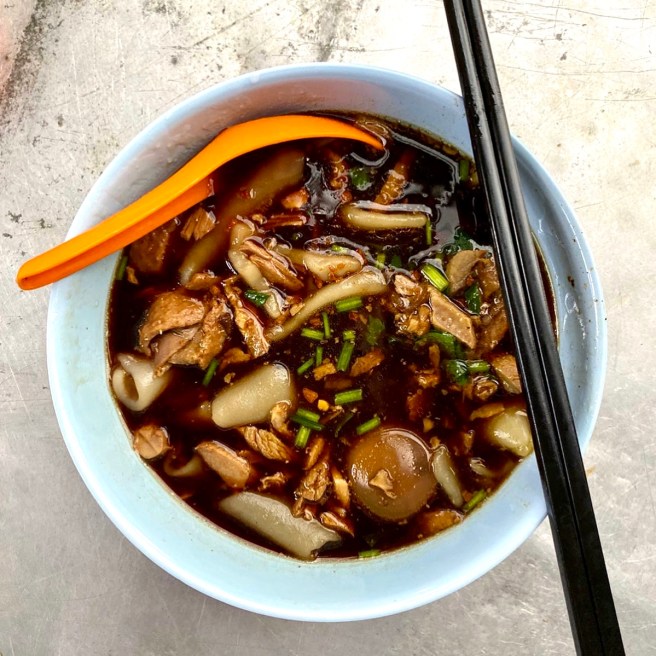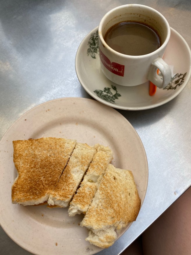 A traditional breakfast in Malaysia is kaya toast made by spreading kaya (a sort of coconut jam) on to one slice of toast, butter on another, and sandwiching them together before toasting. This makes the kaya and the butter melt together and it’s absolutely scrumptious! I heard that Toh Soon Cafe was the place to go for their wood fired kaya toast and local sweet kopi (coffee). It was a bit of a walk so I was determined to get a seat when I arrived and saw how busy it was. The turnover seemed to be fairly efficient though so I wasn’t waiting for very long. The toast was simple but really tasty with a perfect kaya to butter ratio and I enjoyed the experience of mingling with locals and Malaysian visitors.