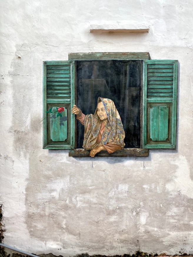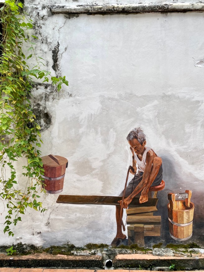 I could see on Google Maps that there was some street art featured and so I turned right on to Jalan Hang Kasturi before immediately turning right again on to a little lane with a number of murals depicting local people and trades.
