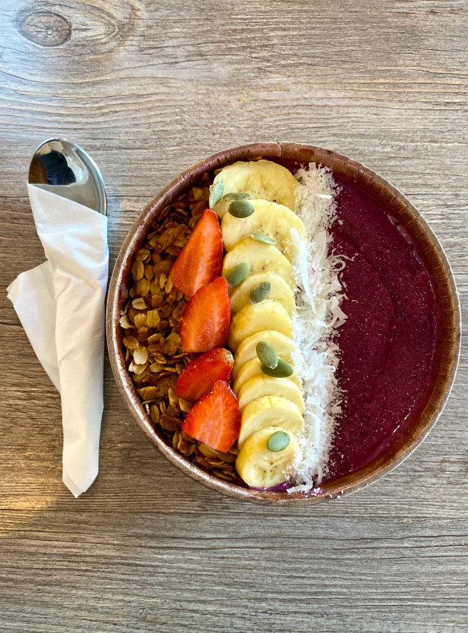 This quaint little coffee shop on Jalan Hang Katsuri was my pit stop for a delicious mixed berry smoothie bowl topped with granola, coconut and fresh strawberries and banana. I loved the drapes on the walls, the subtle fairy lights and decor of lace dream catchers and greenery.